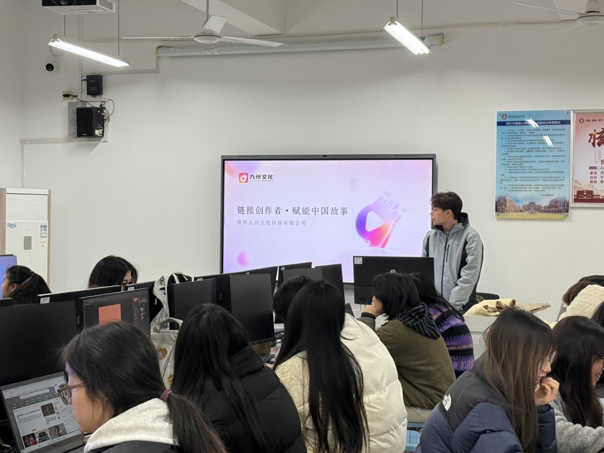 為拓寬2026屆畢業(yè)生就業(yè)渠道,深化產(chǎn)教融合,1月19日,設(shè)計與信息學院邀請嘉興九州文化傳媒有限公司(以下簡稱“九州文化”)進校舉辦就業(yè)宣講會。設(shè)計與信息學院2026屆數(shù)百名畢業(yè)生參與活動。