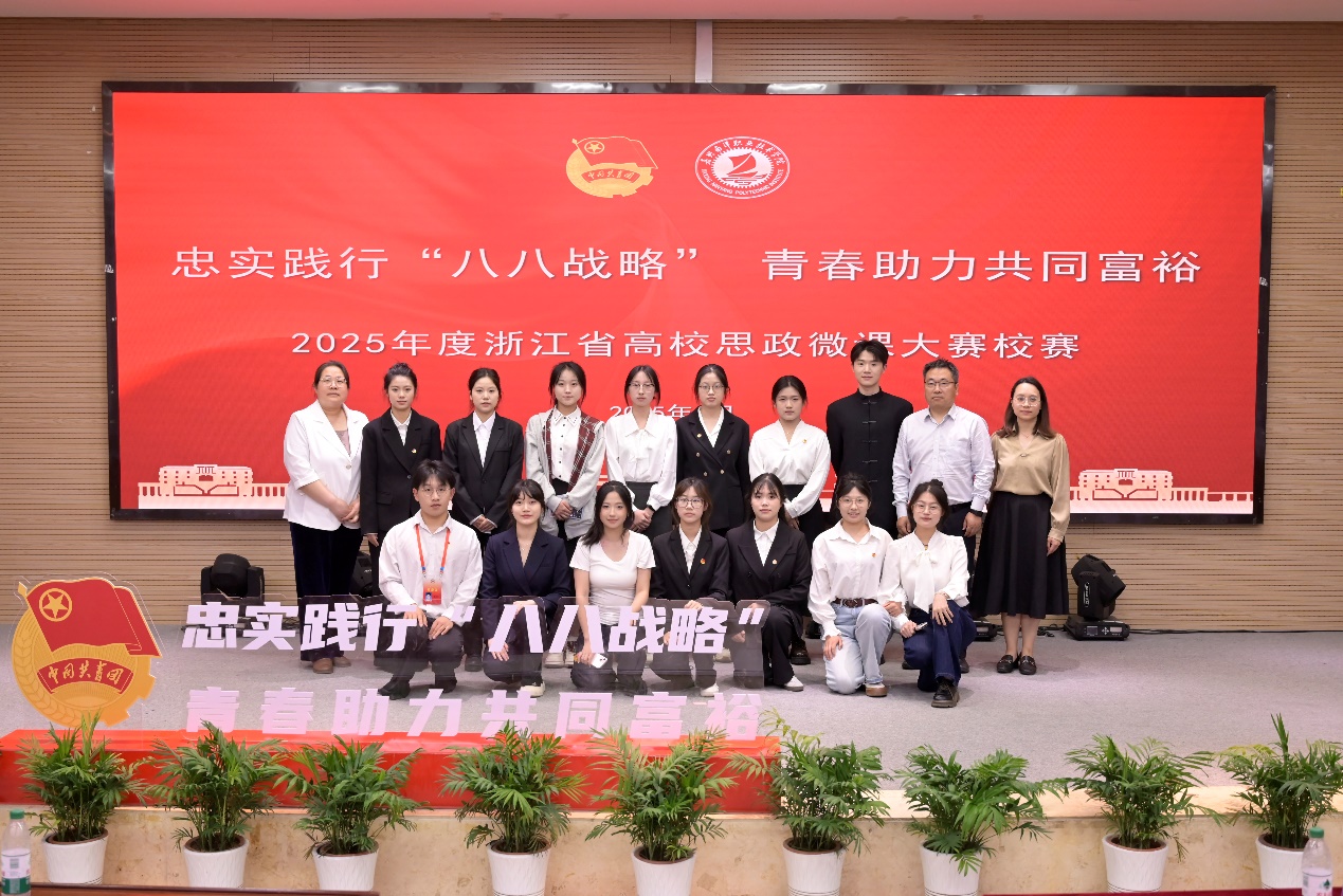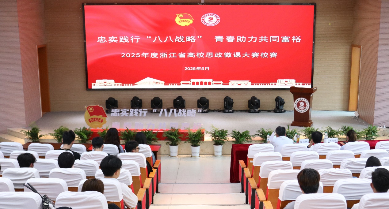 為全面貫徹黨的二十大和二十屆二中、三中全會精神,深入貫徹落實(shí)習(xí)近平總書記在全國教育大會上的重要講話及對學(xué)校思政課建設(shè)的重要指示精神,5月6日,校團(tuán)委在圖書館208報告廳成功舉辦“忠實(shí)踐行‘八八戰(zhàn)略’青春助力共同富裕”2025年度浙江省高校思政微課大賽校賽。大賽分教師組和學(xué)生組進(jìn)行分組比賽,經(jīng)各學(xué)院評比推薦,共有9名教師與15名學(xué)生參加校賽,學(xué)校黨委書記陳培江,黨委委員、副校長袁維見,黨委委員、校長助理姚思佳,馬克思主義學(xué)院院長李紅麗出席并擔(dān)任評委。
