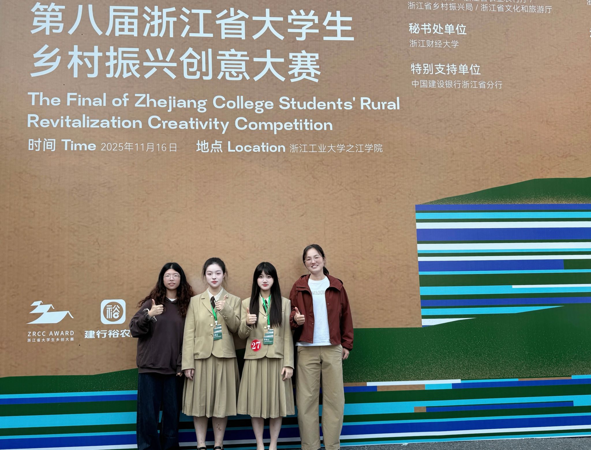 近日,“建行裕農(nóng)通杯”第八屆浙江省大學(xué)生鄉(xiāng)村振興創(chuàng)意大賽主體賽及“青春廉潮”文化創(chuàng)意專項賽圓滿落幕。我校學(xué)生憑借扎實的專業(yè)素養(yǎng)和創(chuàng)新實踐方案,在本屆大賽中再次取得優(yōu)異成績,斬獲主體賽金獎2項、銀獎3項、銅獎10項,專項賽銀獎1項,銅獎1項。