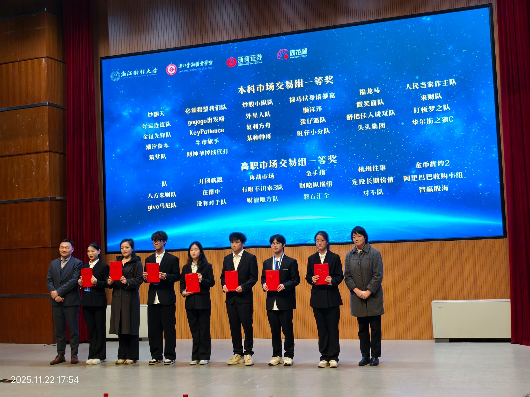 近日,由浙江省教育廳、浙江省大學(xué)生科技競賽委員會主辦的“浙商證券同花順杯”第十一屆浙江省大學(xué)生證券投資競賽決賽現(xiàn)場答辯在浙江金融職業(yè)學(xué)院落下帷幕。本次競賽歷時5個月,經(jīng)過初賽、復(fù)賽、決賽等環(huán)節(jié),我校財(cái)經(jīng)與商貿(mào)學(xué)院學(xué)生團(tuán)隊(duì)最終榮獲了一等獎2項(xiàng)、二等獎1項(xiàng)、三等獎2項(xiàng),創(chuàng)下我校參加該賽項(xiàng)以來的最佳成績!
