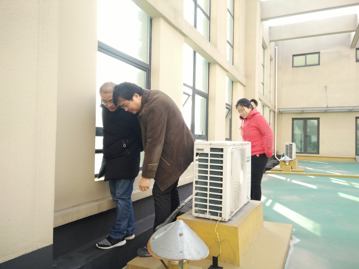 圖1:工作人員在圖書館樓頂排查漏水隱患